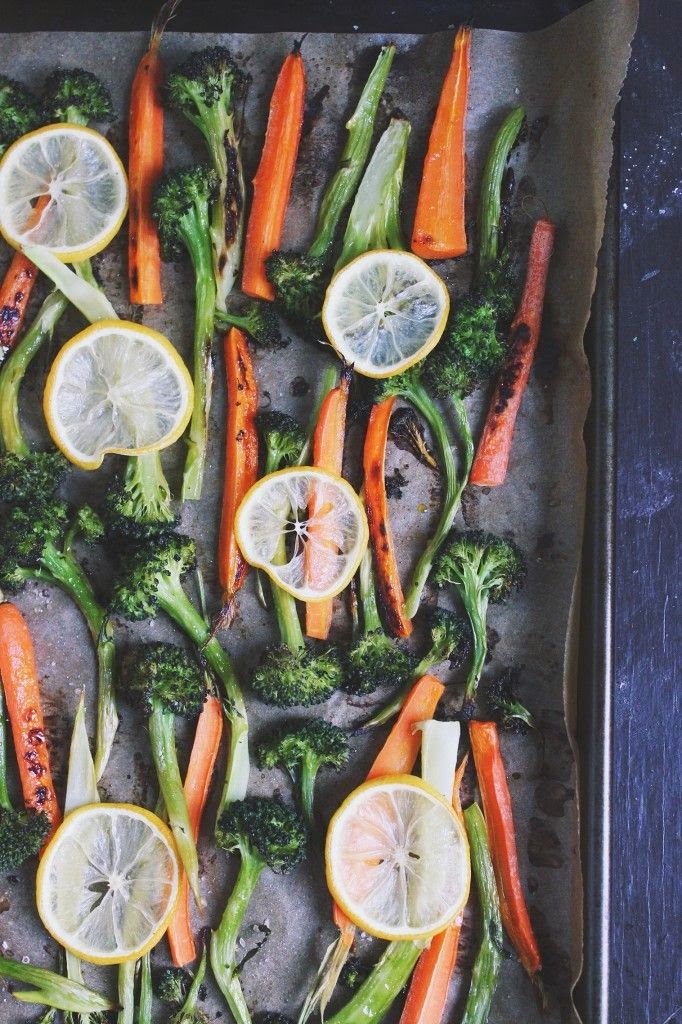 Zanahorias y Brocoli al horno con una salsa de queso de cabra con limón y orégano